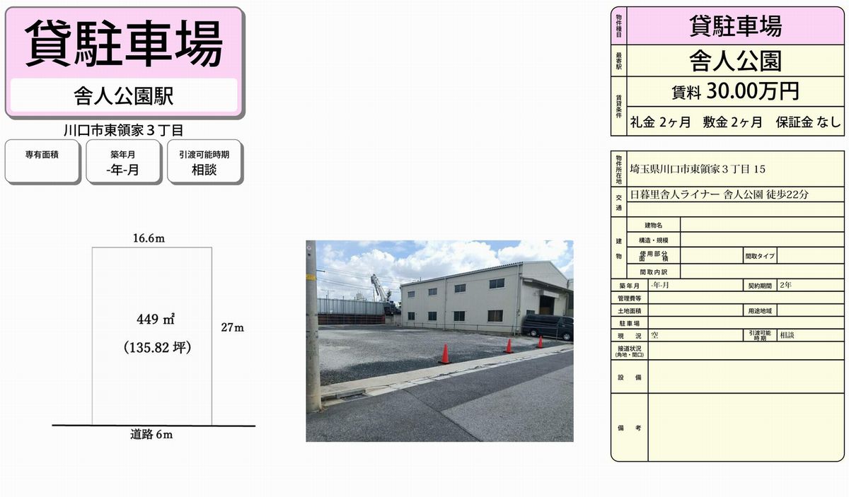 埼玉県川口市東領家3-15 (舎人公園) 舎人公園 貸地 詳細データ
