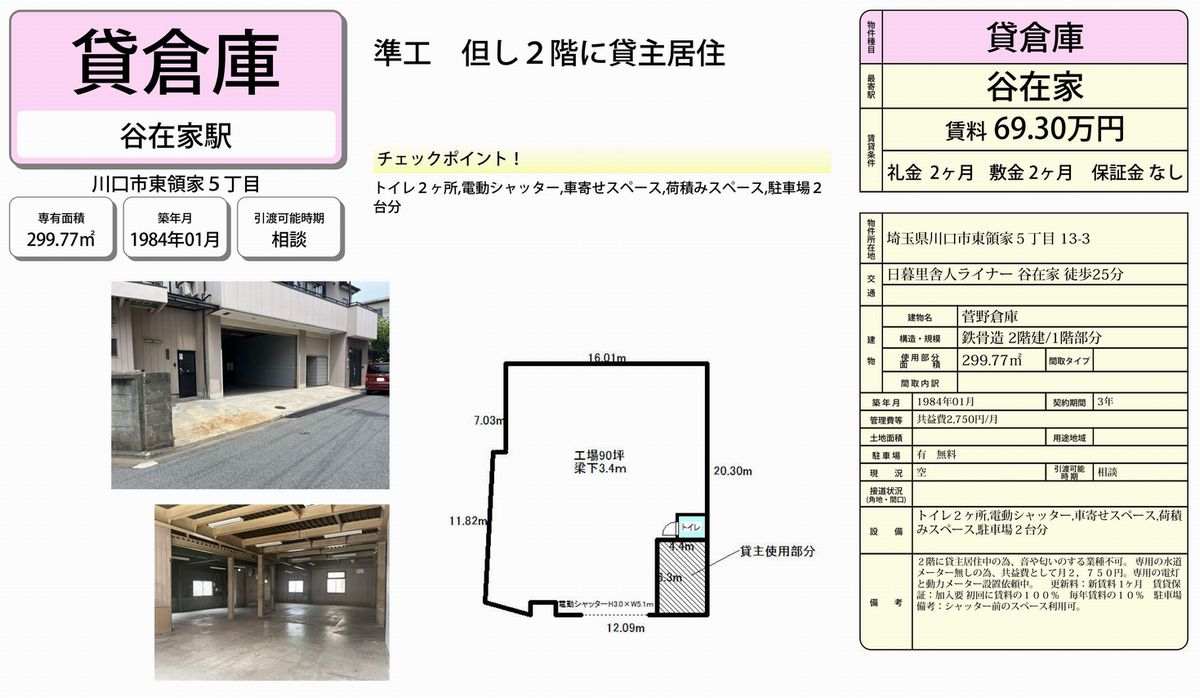 埼玉県川口市東領家5-13-3 (谷在家) 菅野倉庫 詳細データ