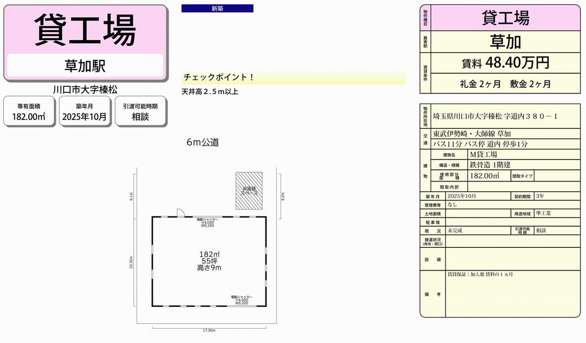 物件名 | 草加 工場 |