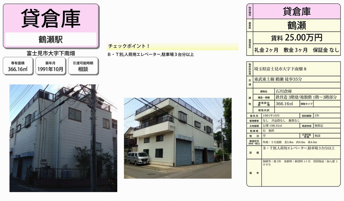 埼玉県富士見市下南畑8 (鶴瀬) 石川倉庫 詳細データ