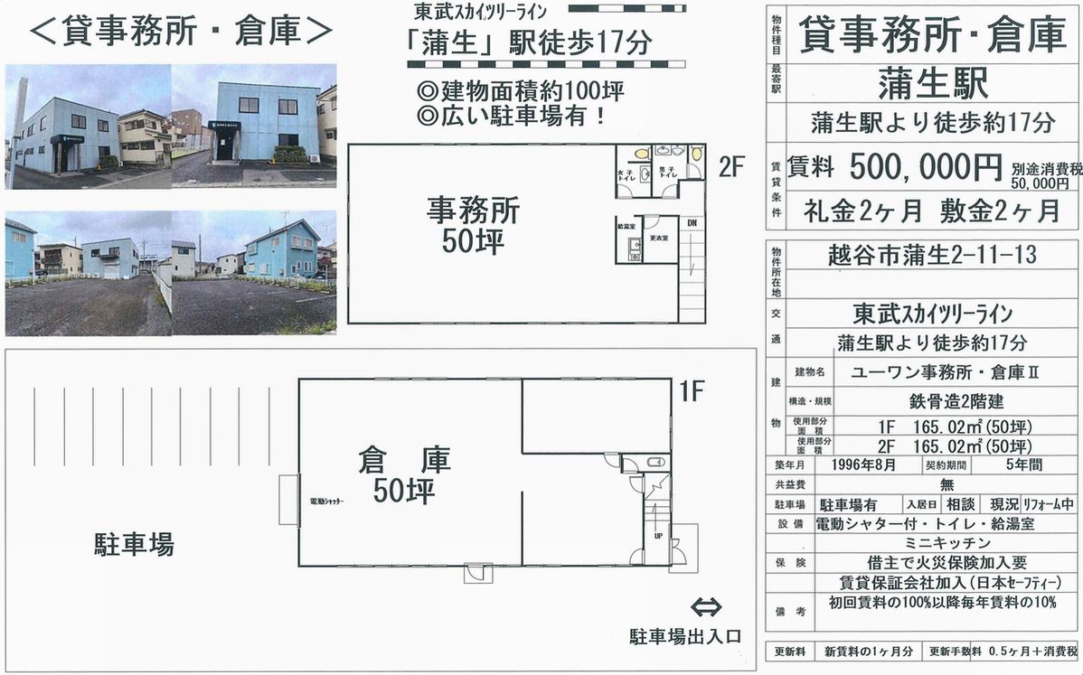 埼玉県越谷市蒲生2-11-13 (蒲生) ユーワン事務所倉庫2 詳細データ