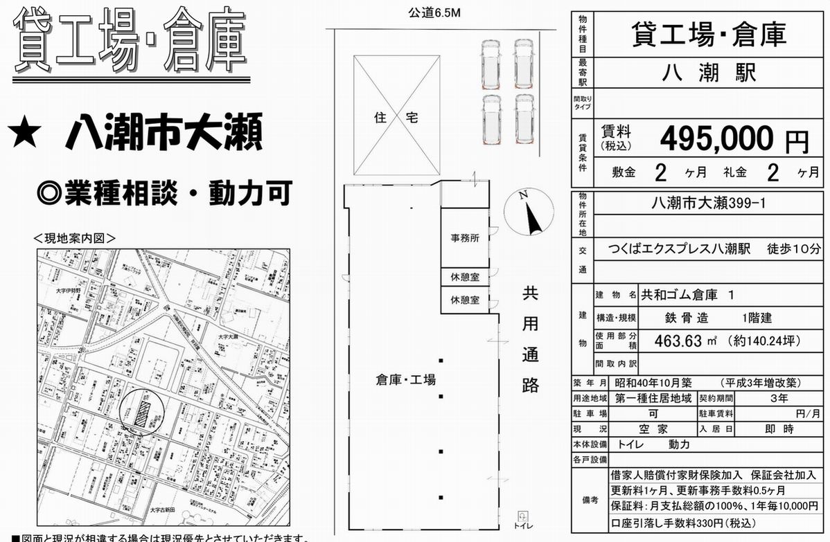 埼玉県八潮市大字大瀬399-1 (八潮) 共和ゴム倉庫1 詳細データ