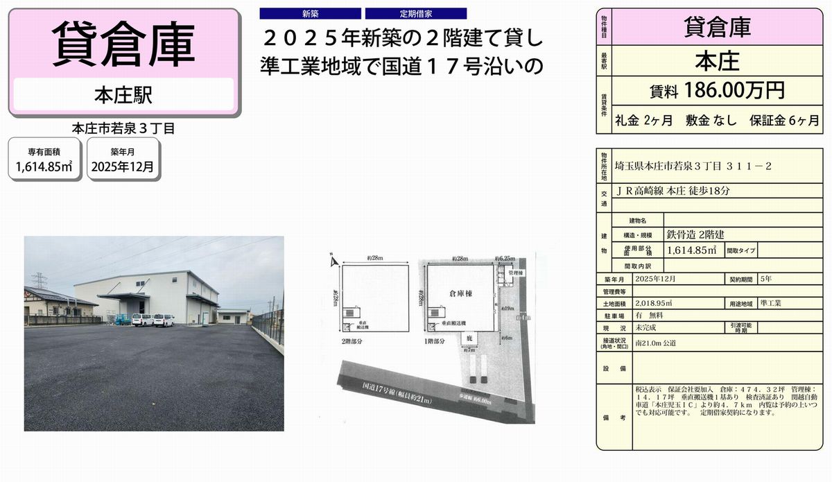 埼玉県本庄市若泉3-311-2 (本庄) 本庄 倉庫 詳細データ