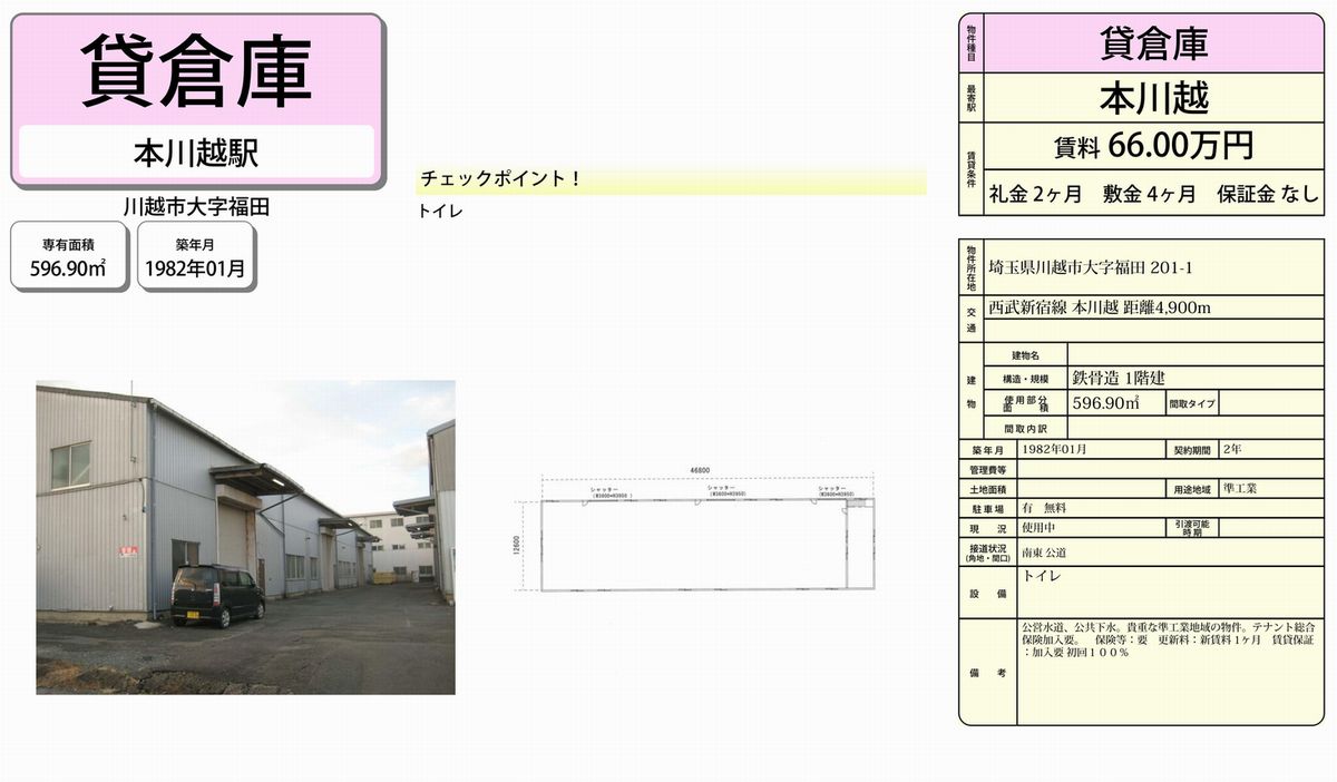 埼玉県川越市福田201-1 (本川越) 本川越 倉庫 詳細データ