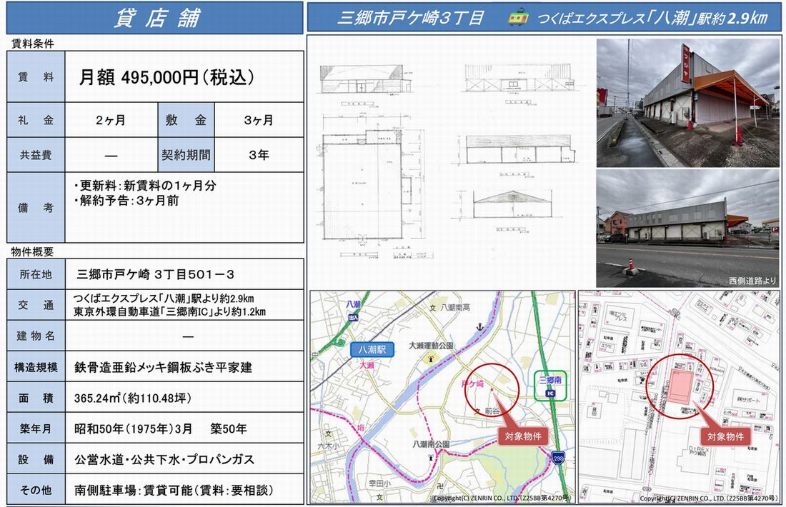 埼玉県三郷市戸ケ崎3-501-3 (八潮) 八潮 倉庫 詳細データ