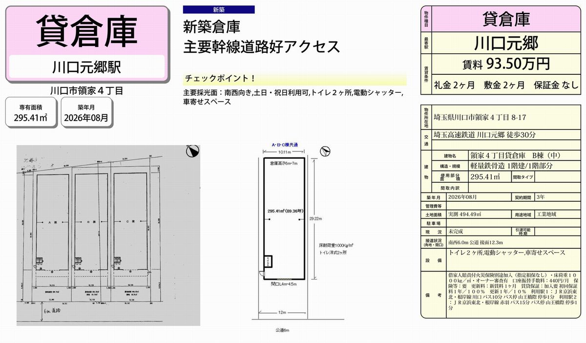| 物件名 | 川口元郷 倉庫B棟 |