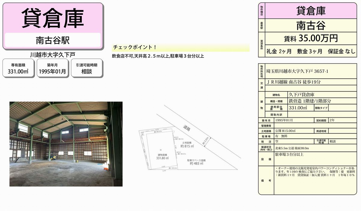 | 物件名 | 南古谷 倉庫 |