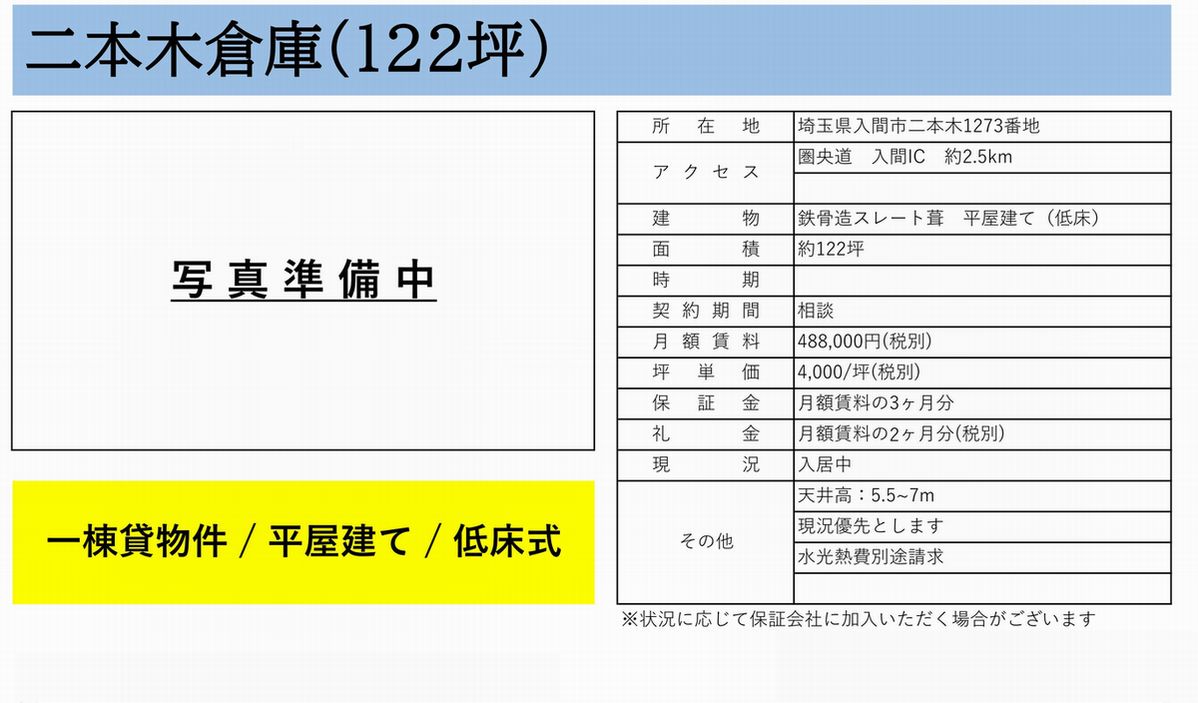 | 物件名 | 入間貸倉庫 |