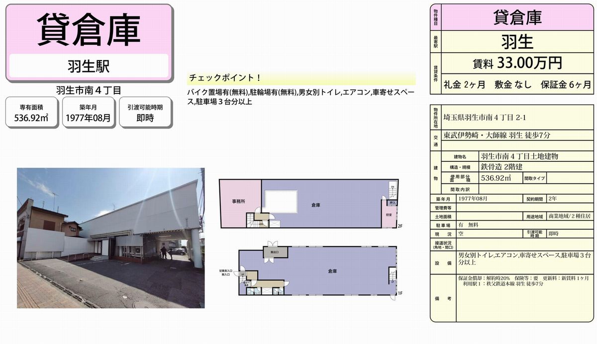 | 物件名 | 羽生 倉庫 |
