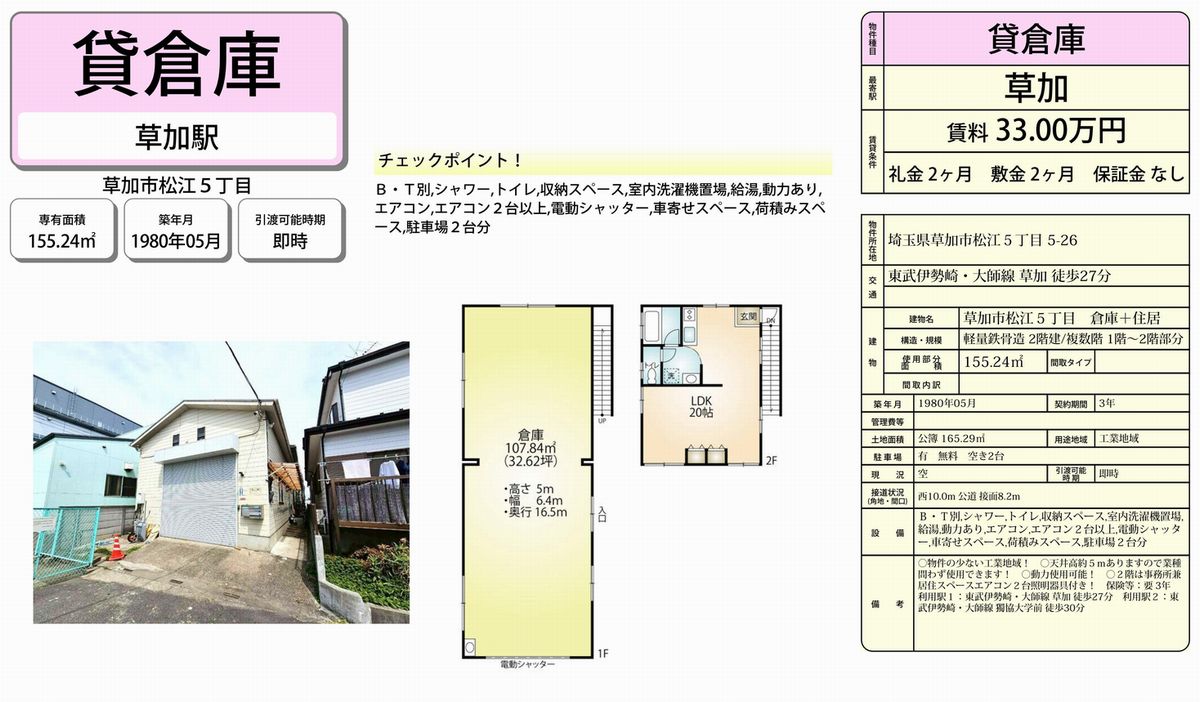 草加市松江5-5-26(草加駅)草加 倉庫